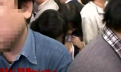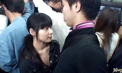 Japanese mega-slut gets crammed in a crowded public bus