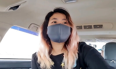 Bored Chinese American chic, sitting in the car waiting...