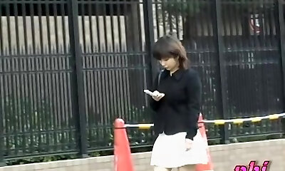 Glorious oriental tramp flashes her cooter while her dress get nicked