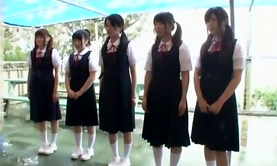 Anje Hoshi, and horny friend Asian hotties in outdoor threeway