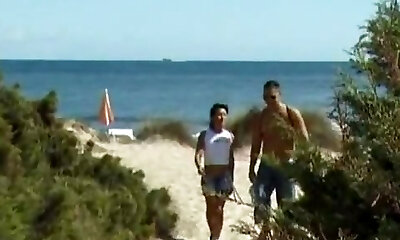 Wild Asian stunners in an erotic beach fuck in an outdoors fucky-fucky