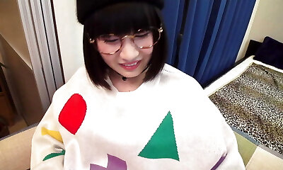 Alluring Japanese teen in glasses gets super hot tit fucking