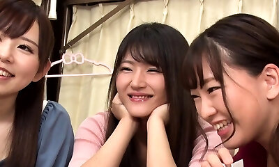 Three Japanese teen give to screw hairy pussies and scream loudly