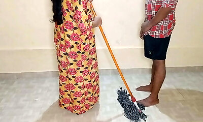 Komal bhabhi was mopping, step-brother-in-law was privately watching, came and started fucking