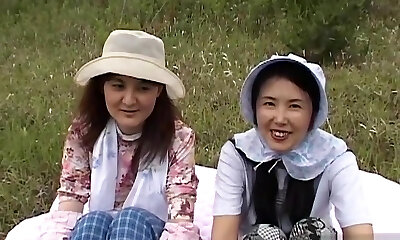 Chinese farmer girl, Maki Hojo had group sex outdoors, unce