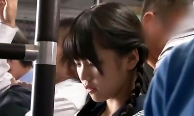 Luxurious Japanese girl with an awesome body getting her honeypot fingered on a bus