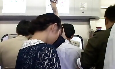 Huge-titted, Asian black-haired is getting molested in a public buss, but she likes it a lot