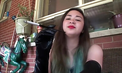 The impressively hot Mitsuko Doll smoking oh so sexy! Wow!